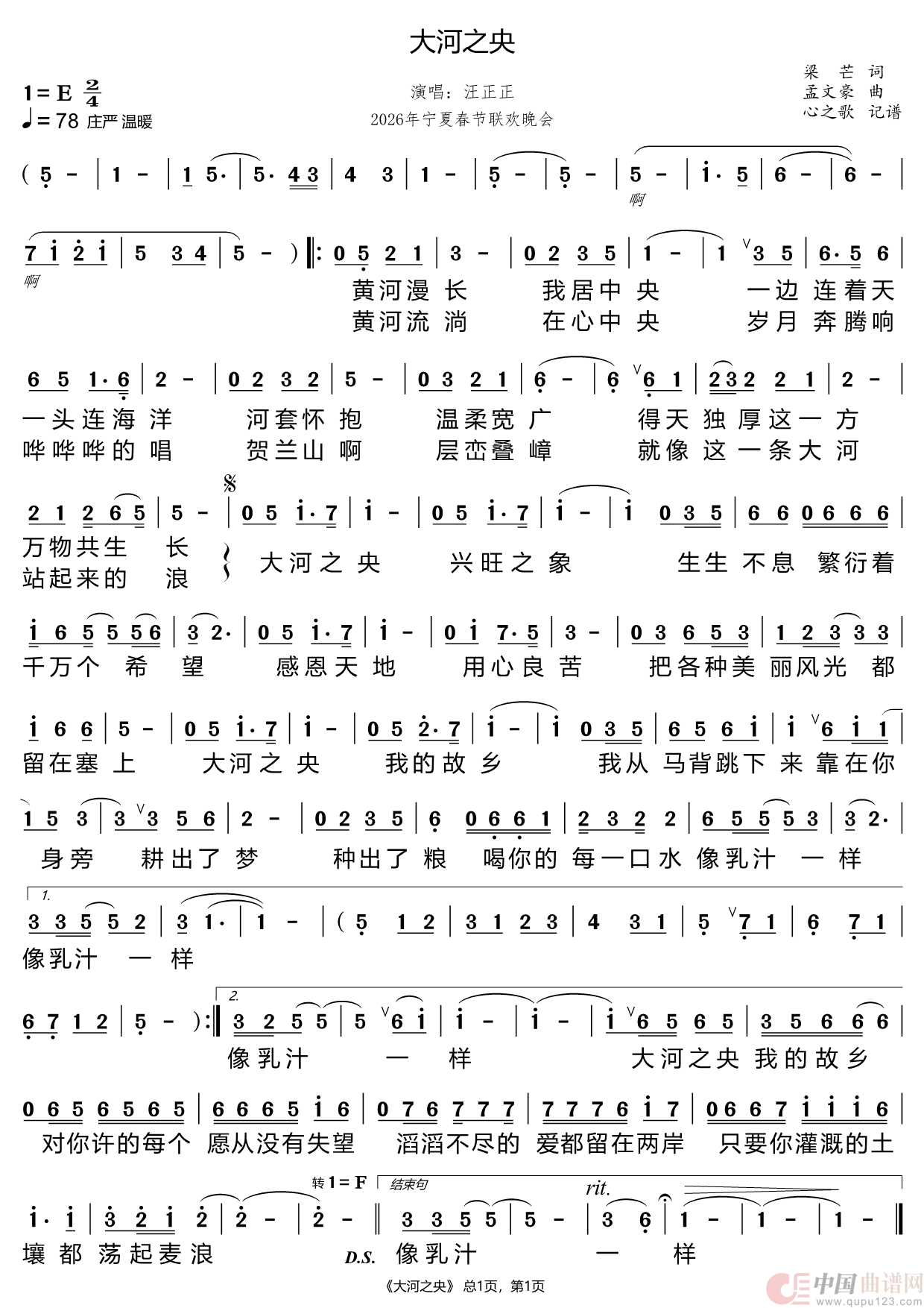 关于《大河之央》曲谱的评论