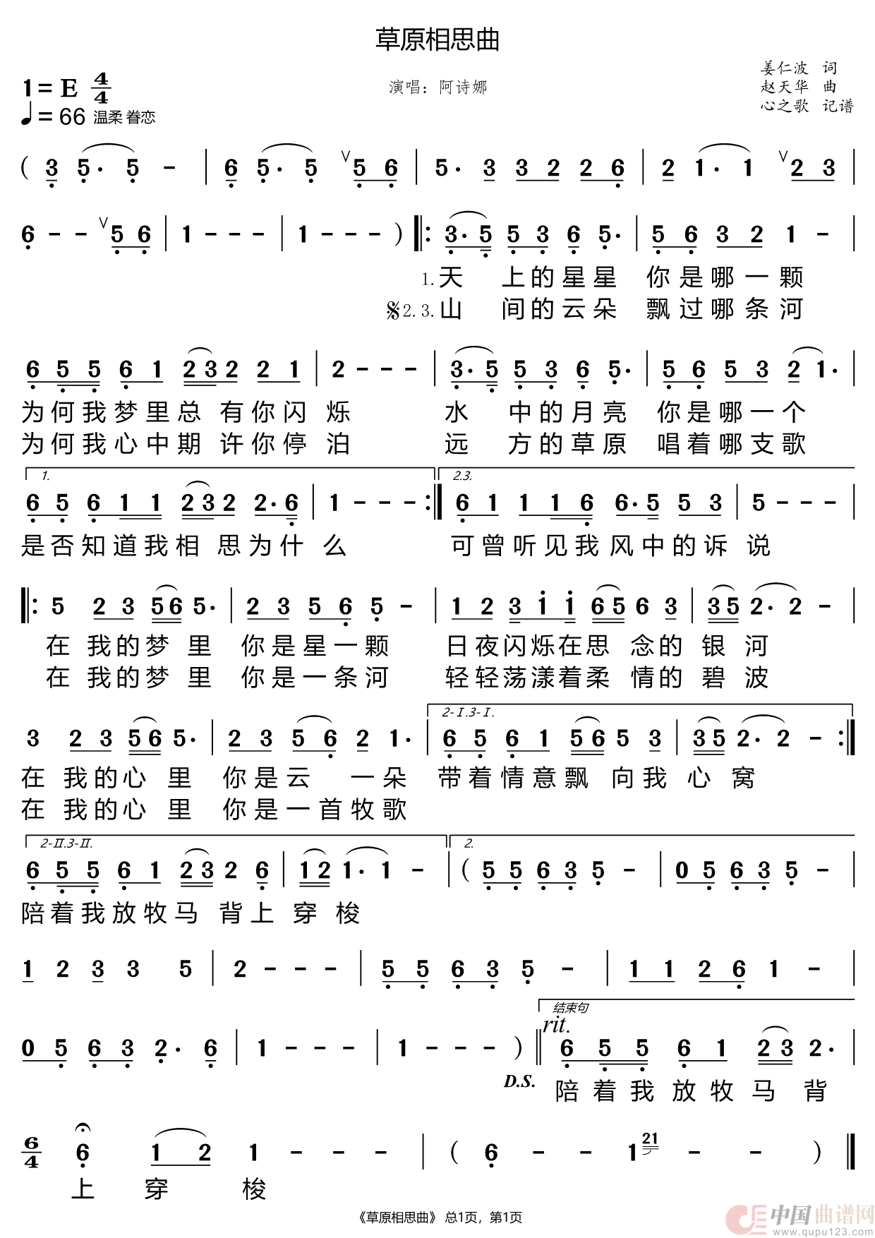 关于《草原相思曲》曲谱的评论