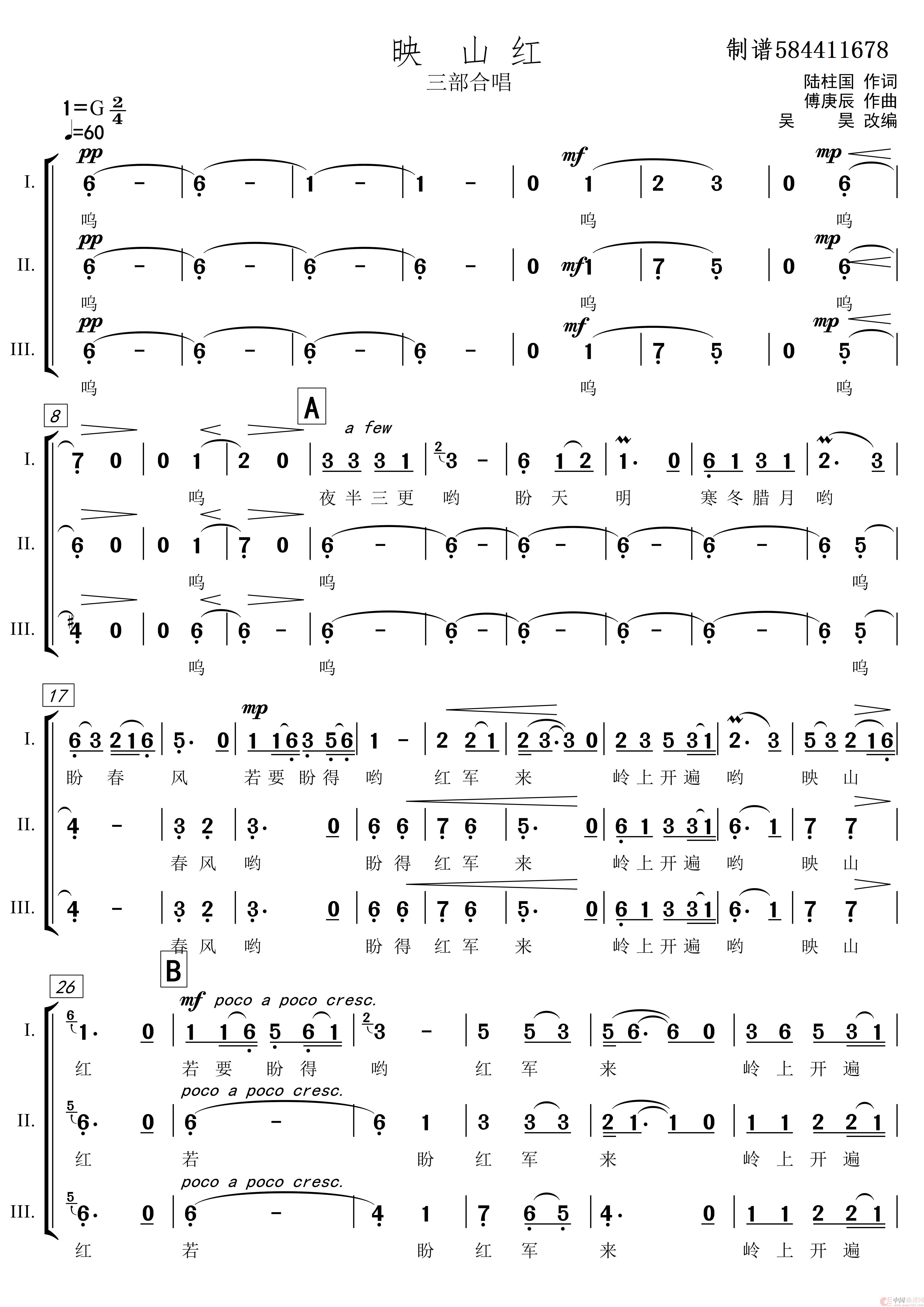 关于《映山红三部合唱简谱》曲谱的评论