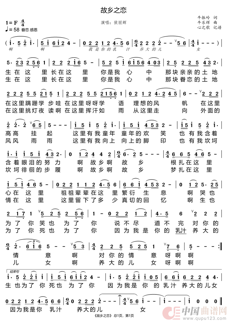 作词:牛振岭   作曲:牛乐辉   演唱(奏):侯丽辉   来源:谱友心之歌上传   上传:心之歌   日期:2026-04-15   浏览次数: