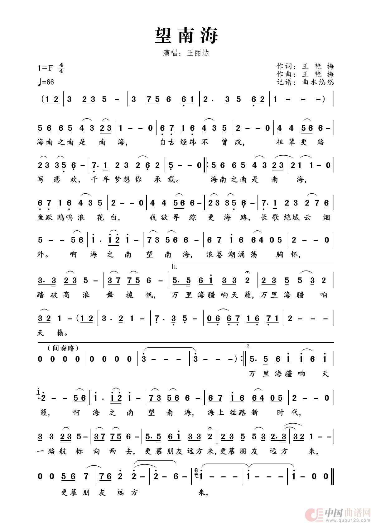 关于《望南海》曲谱的评论