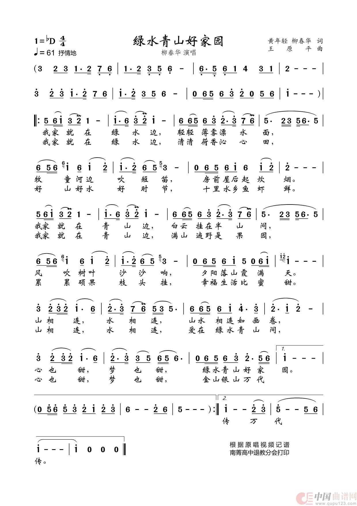 关于《绿水青山好家园》曲谱的评论