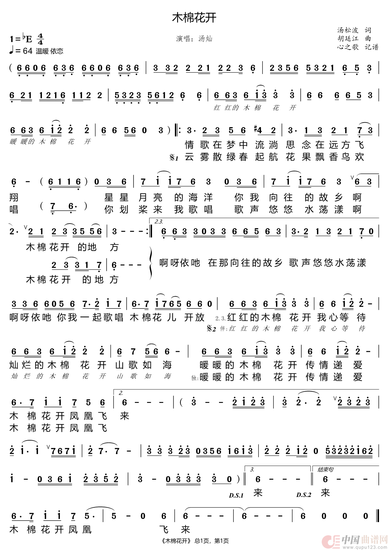 关于《木棉花开》曲谱的评论