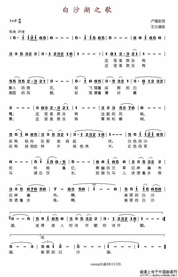 关于《白沙湖之歌》曲谱的评论