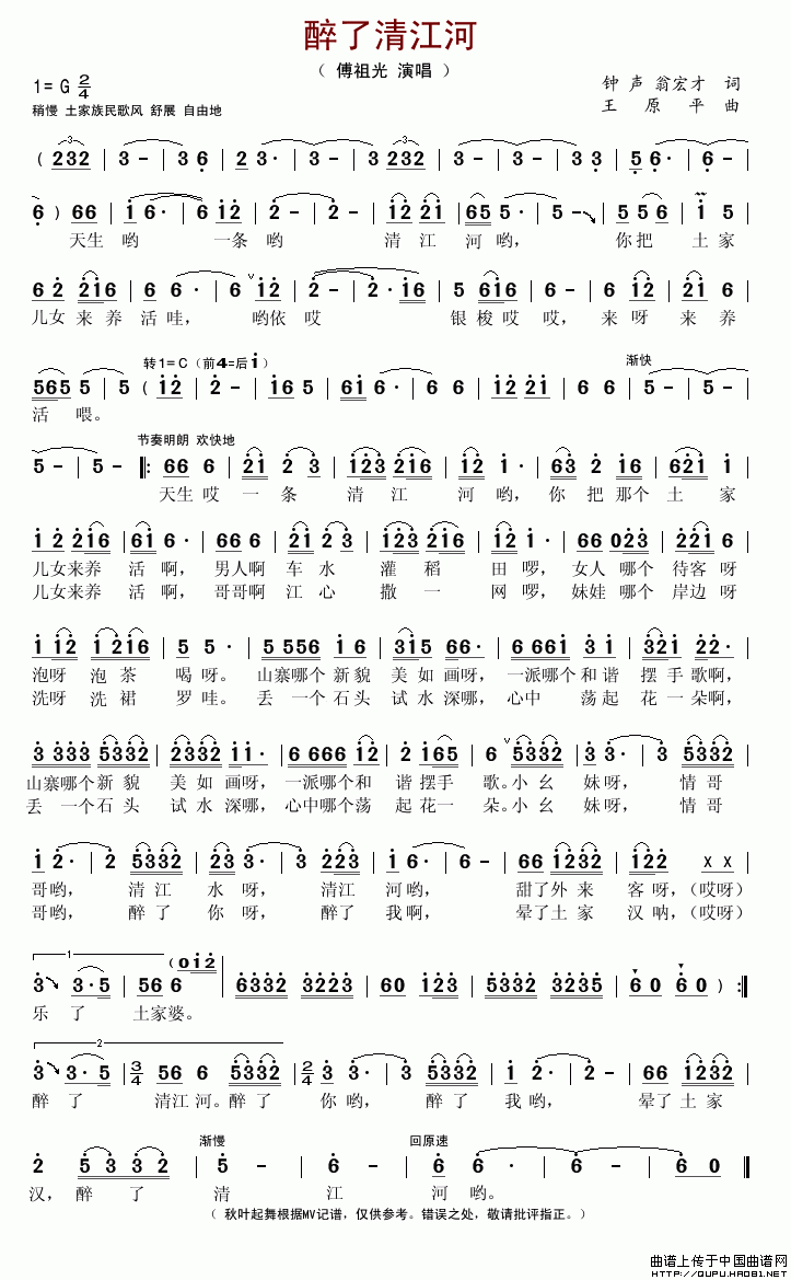 演唱(奏):傅祖光 格式:简谱 来源:秋叶起舞 记谱上传 上传:秋叶起舞