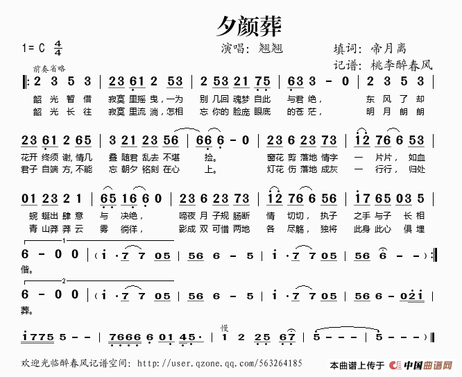 演唱(奏):翘翘 格式:简谱 来源:桃李醉春风 记谱上传 上传:桃李醉春风