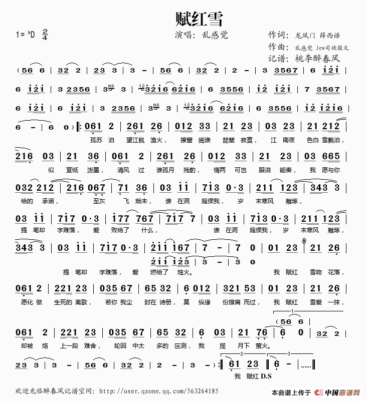 演唱(奏):乱感觉 格式:简谱 来源:桃李醉春风记谱 上传:桃李醉春风