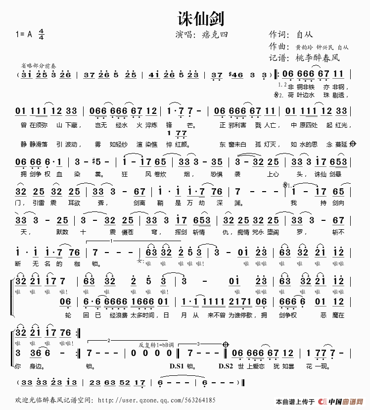 演唱(奏):痞克四   格式:简谱   来源:桃李醉春风记谱   上传:桃李醉春风   日期:2012-08-29   浏览次数:
