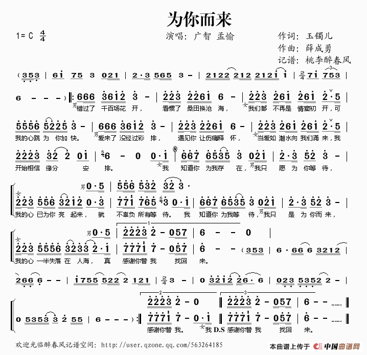 关于《为你而来》曲谱的评论