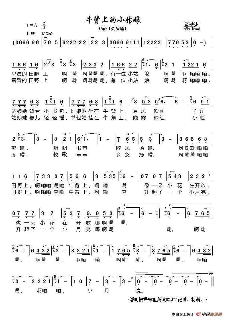 关于《牛背上的小姑娘》曲谱的评论