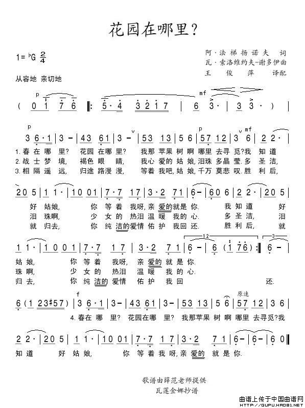 格式:简谱 来源:瓦莲金娜 制谱上传 上传:瓦莲金娜