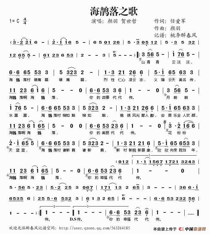 作词:任爱军   作曲:颜羽   演唱(奏):颜羽 贺世哲   来源:桃李醉春风记谱   上传:桃李醉春风   日期:2014-01-14   浏览次数: