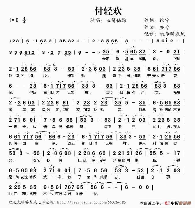 作词:绾宁 作曲:亦兮 演唱(奏):玉笛仙踪 来源:桃李醉春风记谱 上传:桃李醉春风