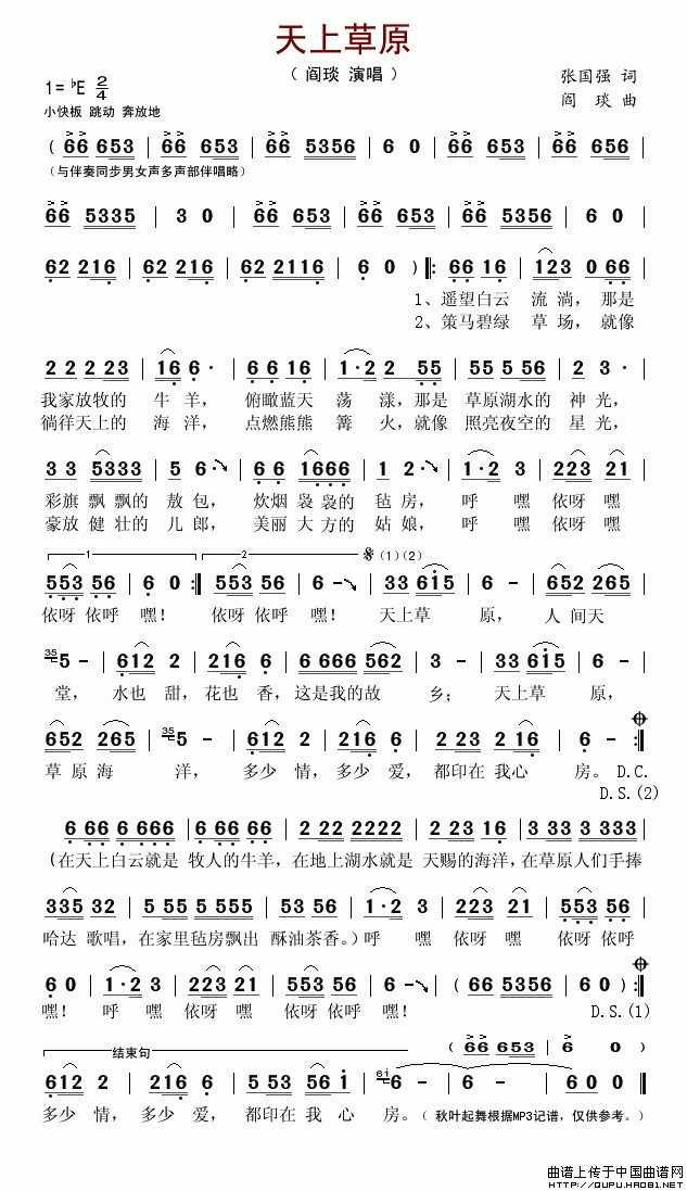 关于《天上草原》曲谱的评论