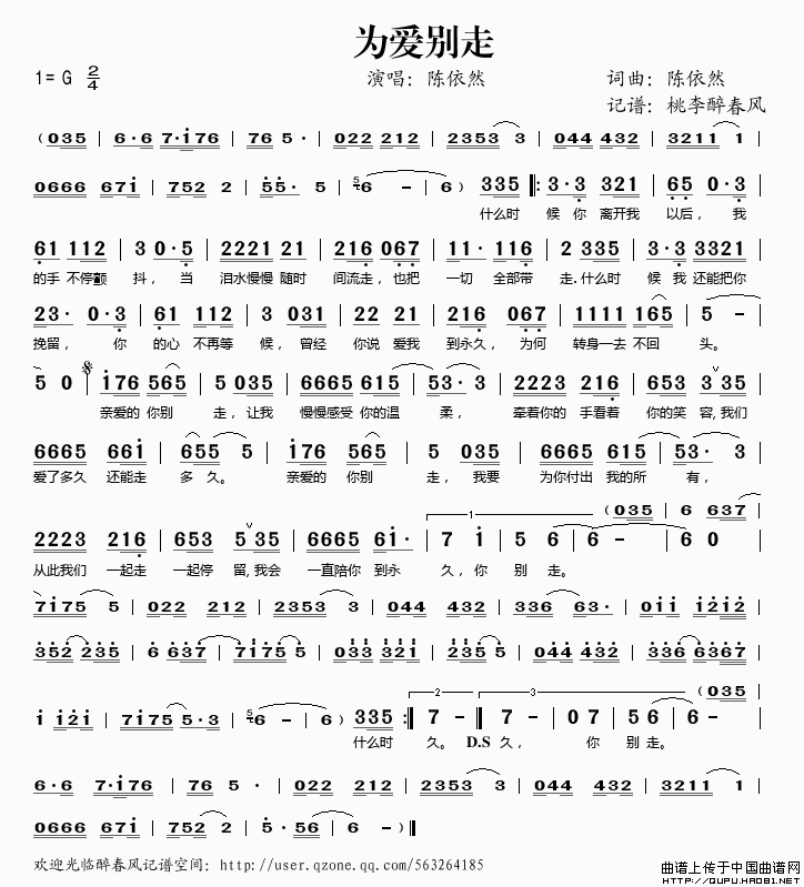 关于《为爱别走》曲谱的评论