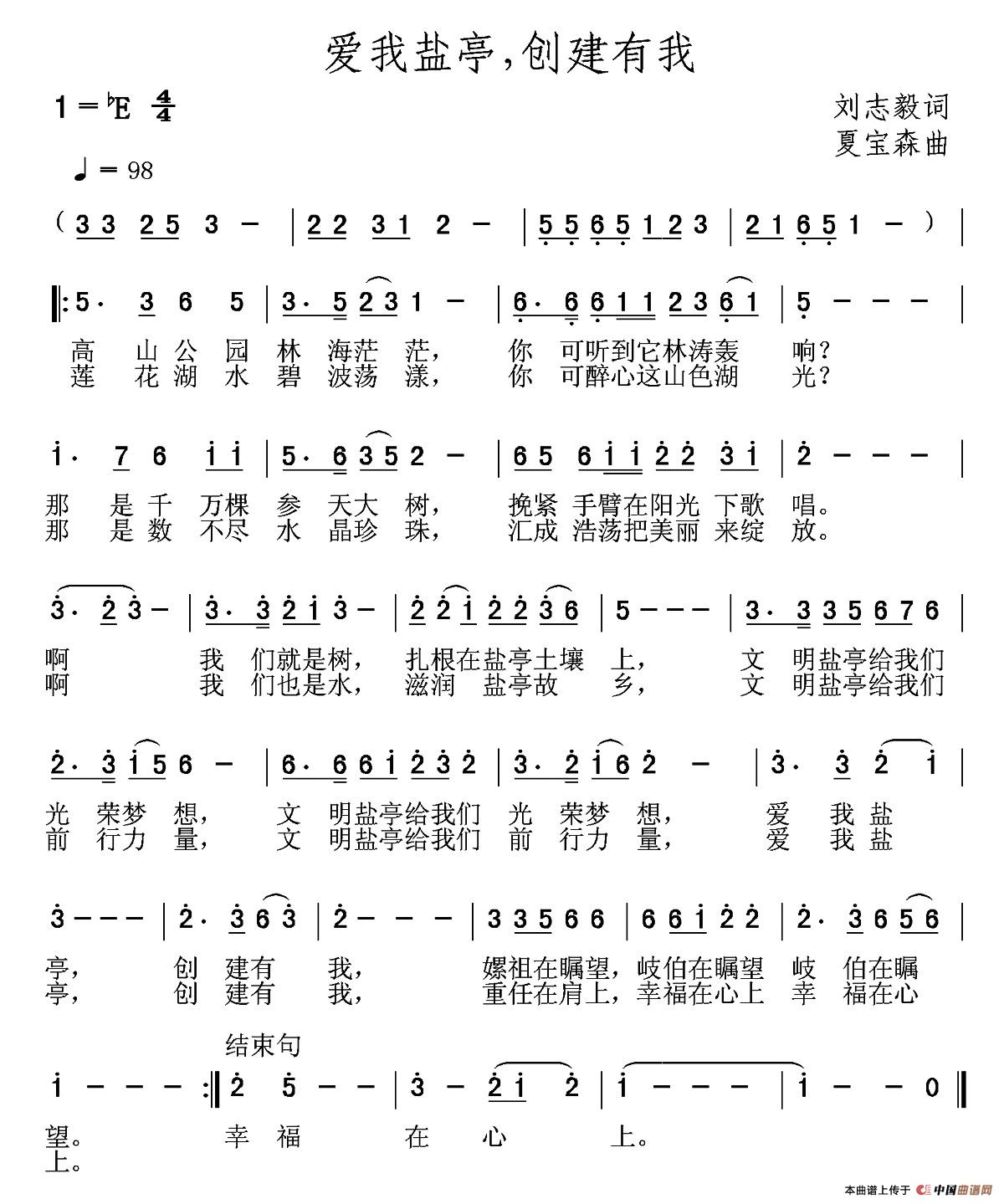 关于《爱我盐亭,创建有我》曲谱的评论