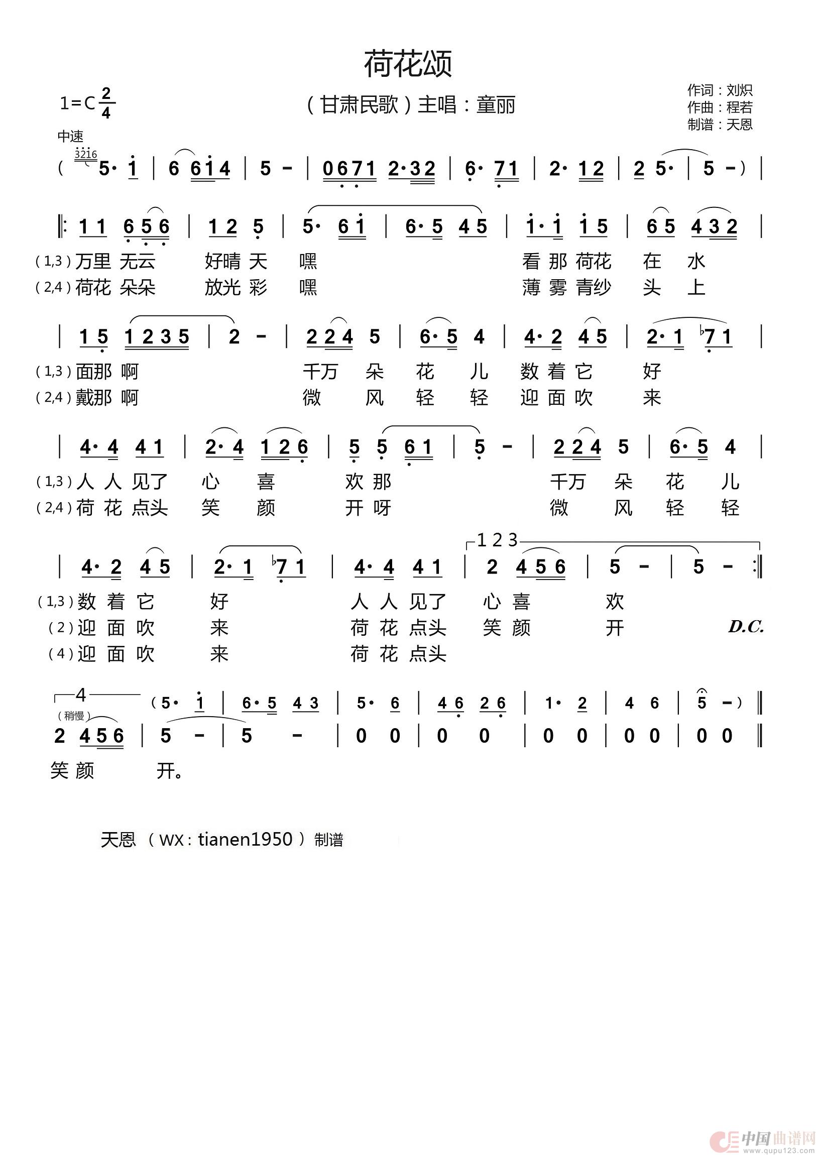 关于《荷花颂 - 童丽主唱》曲谱的评论
