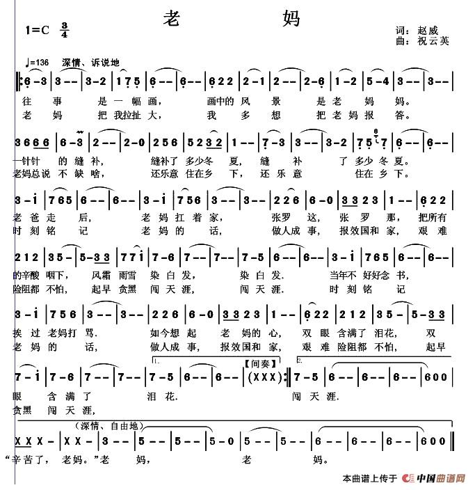 致谢:《中国曲谱网》衷心感谢作者老师馈赠原版歌谱!