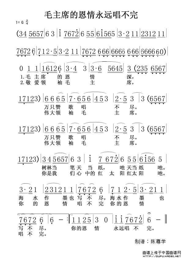 格式:简谱 来源:谱友陈尊学 制谱上传 上传:陈尊学