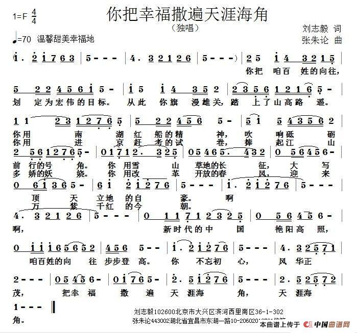 关于《你把幸福撒遍天涯海角》曲谱的评论