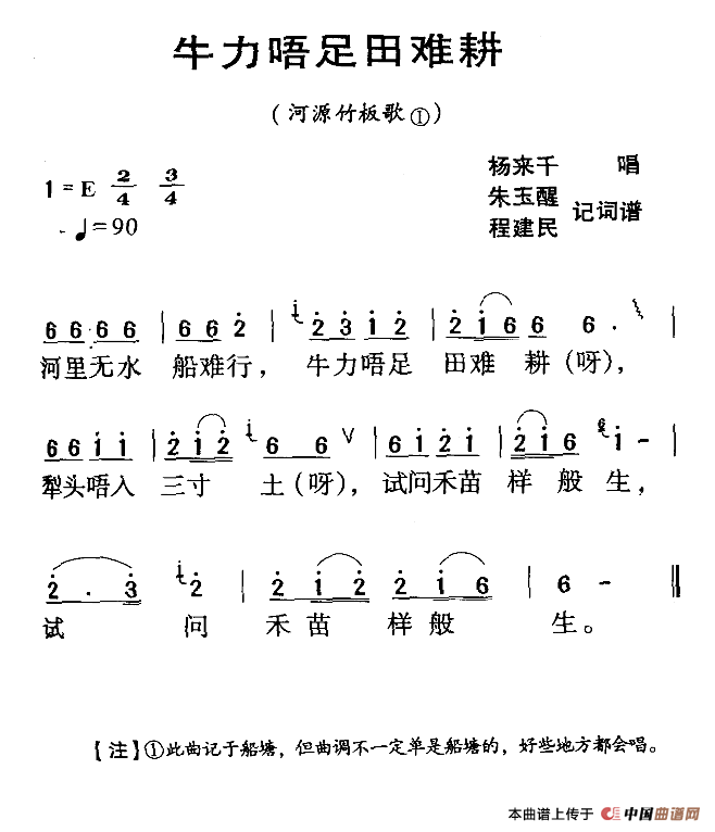 关于《河源民歌:牛力唔足田难耕》曲谱的评论