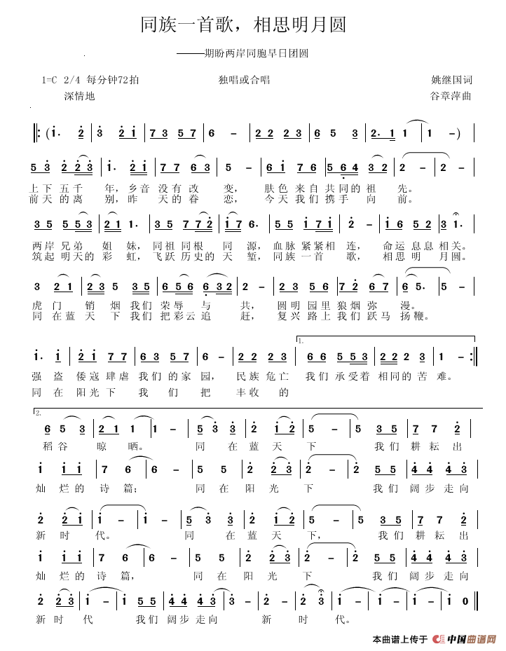 关于《同族一首歌,相思明月圆》曲谱的评论