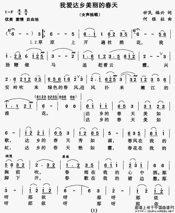 关于《我爱达乡美丽的春天》曲谱的评论