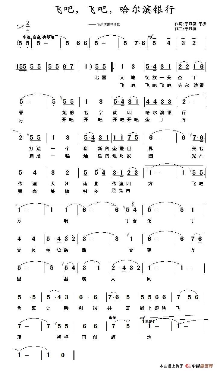 关于《飞吧,飞吧,哈尔滨银行》曲谱的评论