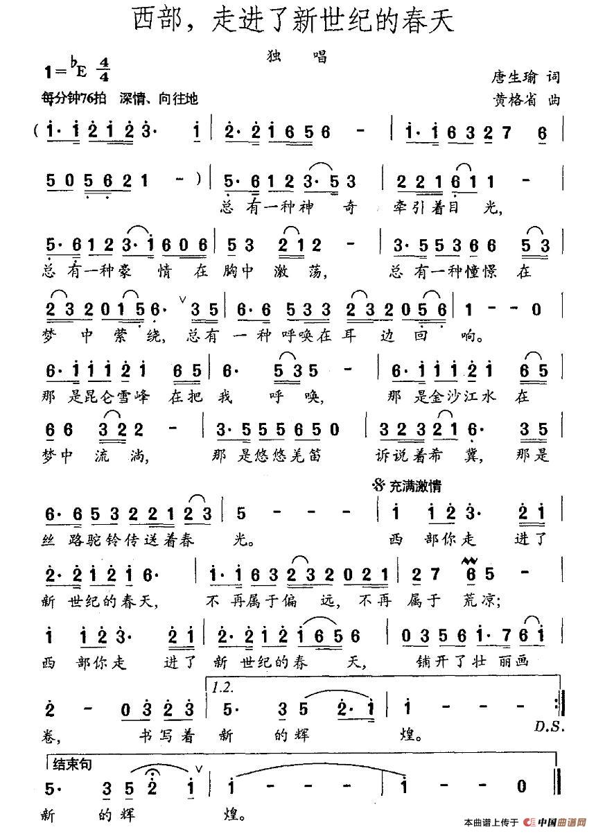 关于《西部,走进了新世纪的春天》曲谱的评论