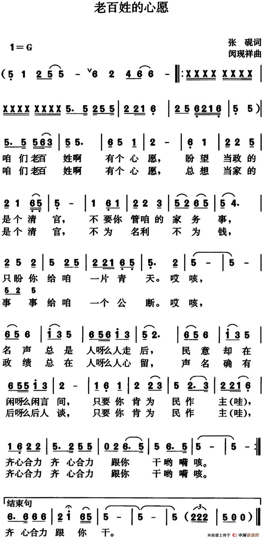 关于《老百姓的心愿》曲谱的评论