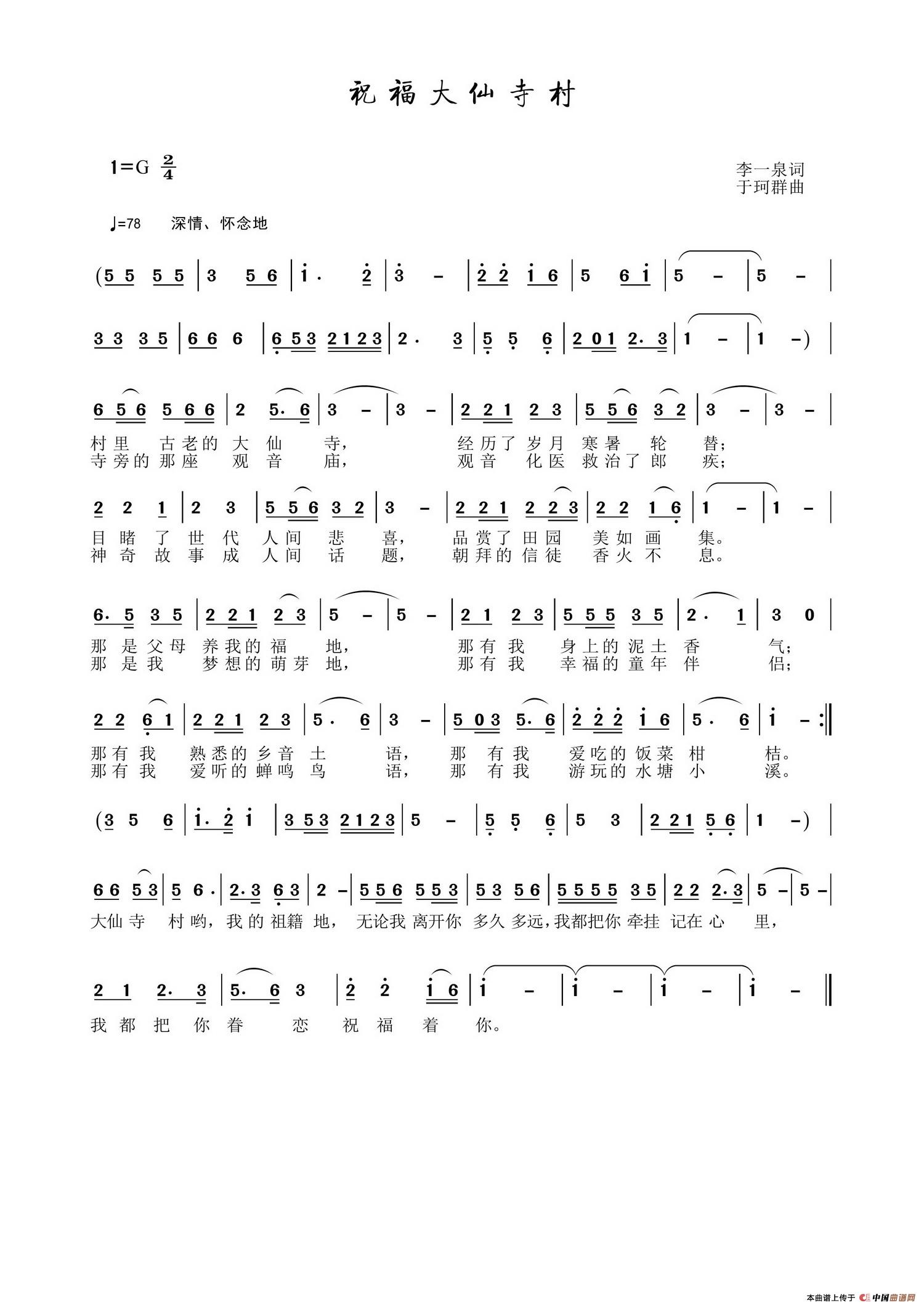 关于《祝福大仙寺村》曲谱的评论