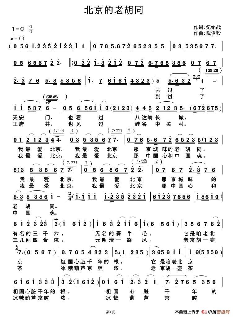 关于《北京的老胡同》曲谱的评论