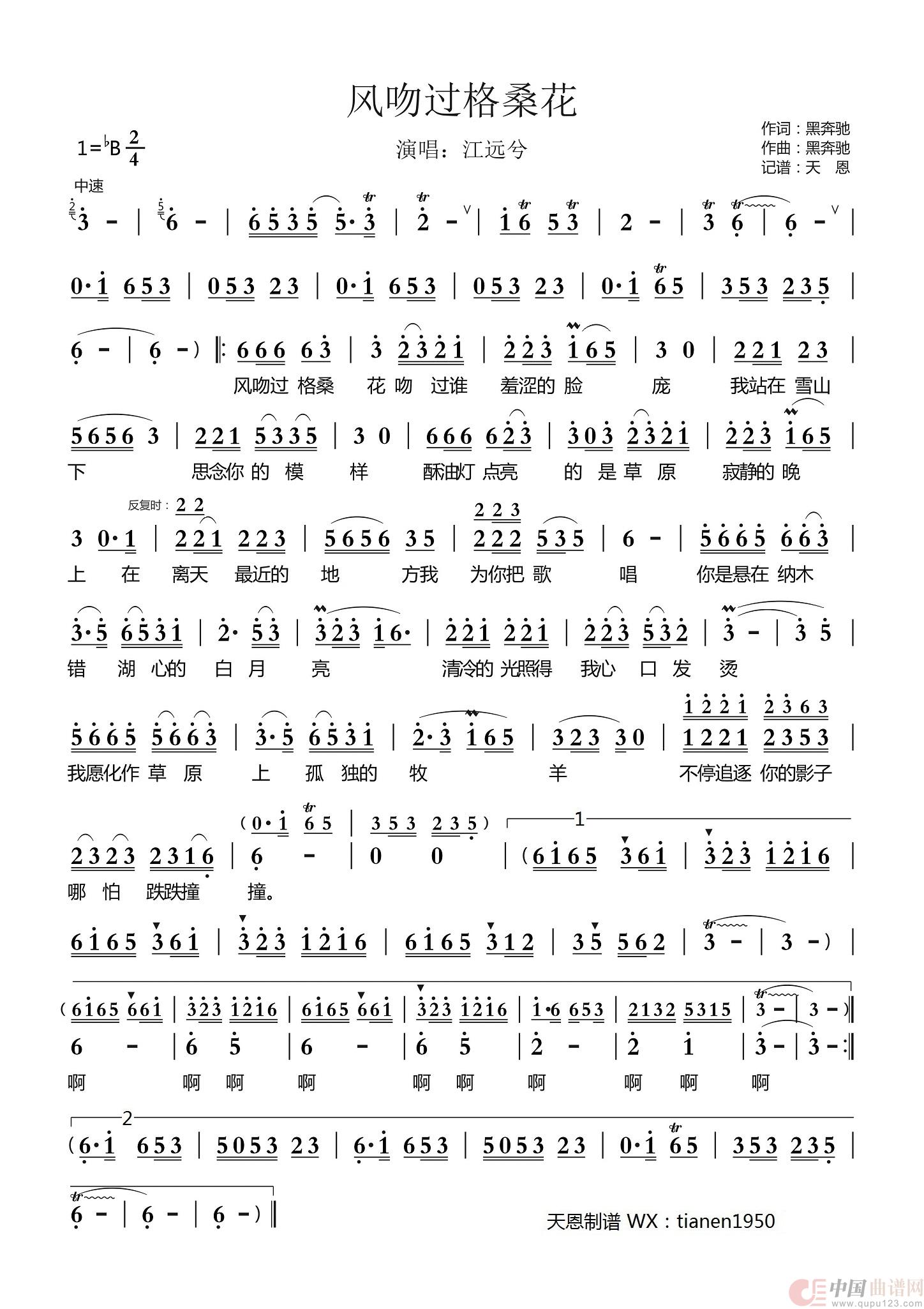 作词:黑奔驰 作曲:黑奔驰 演唱(奏):江远兮 来源:谱友天恩上传 上传:天恩