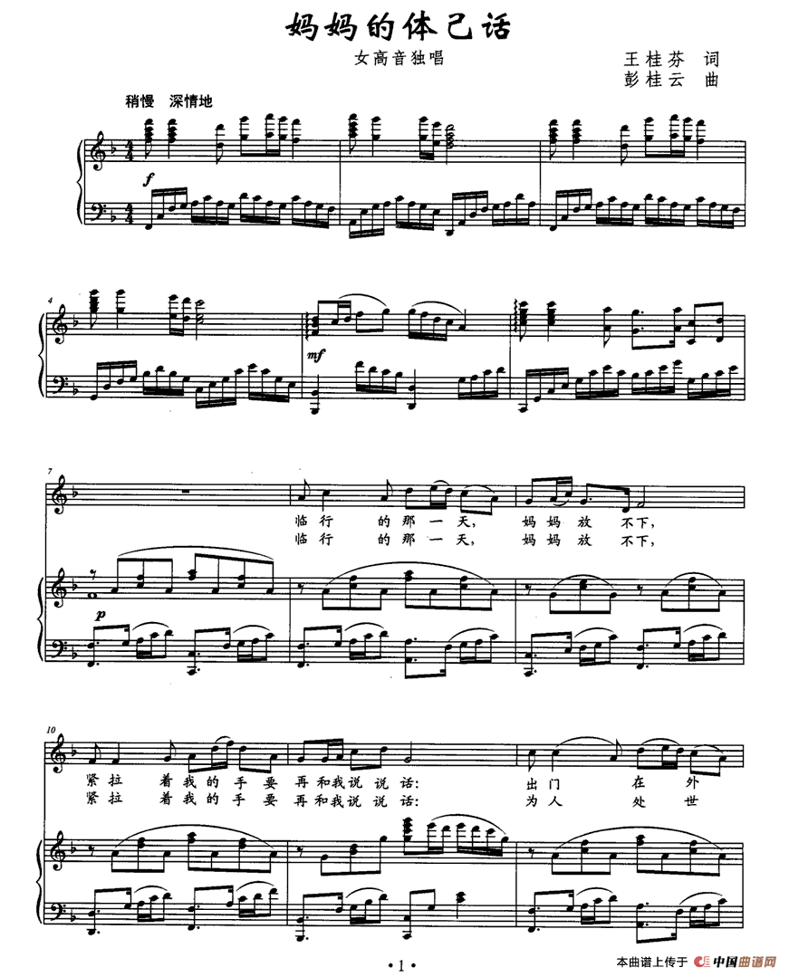 关于《妈妈的体己话》曲谱的评论
