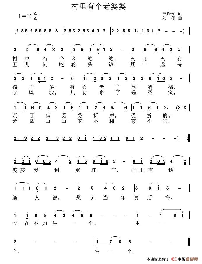 关于《村里有个老婆婆》曲谱的评论