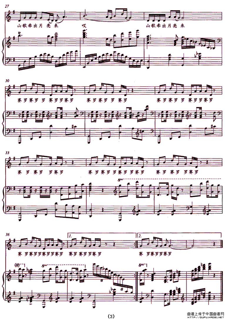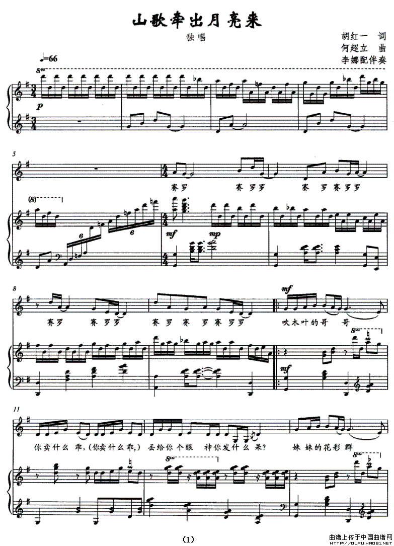 关于《山歌牵出月亮来》曲谱的评论