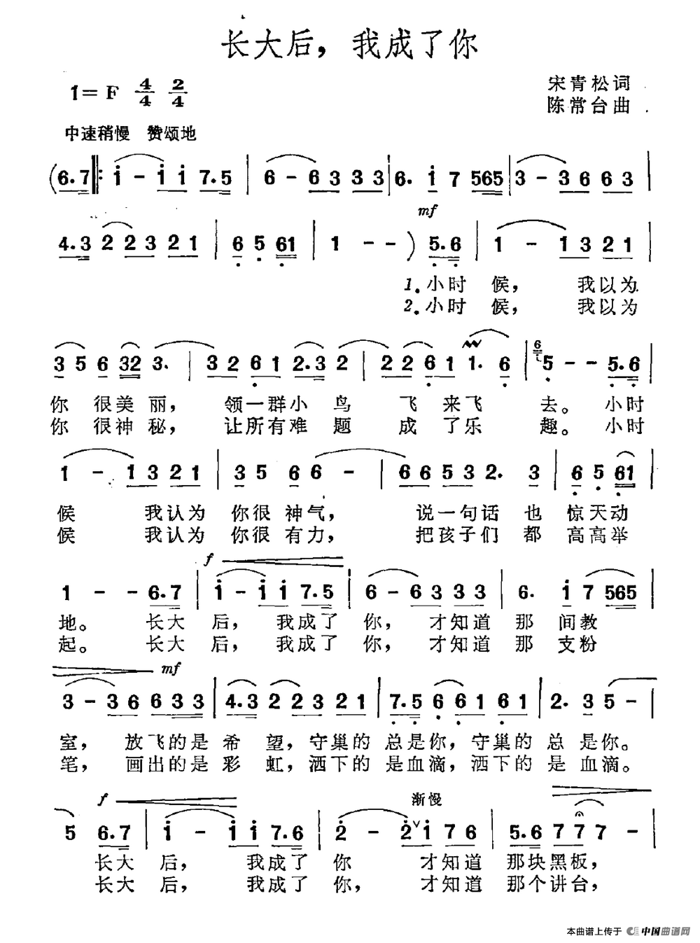 关于《长大后,我成了你》曲谱的评论