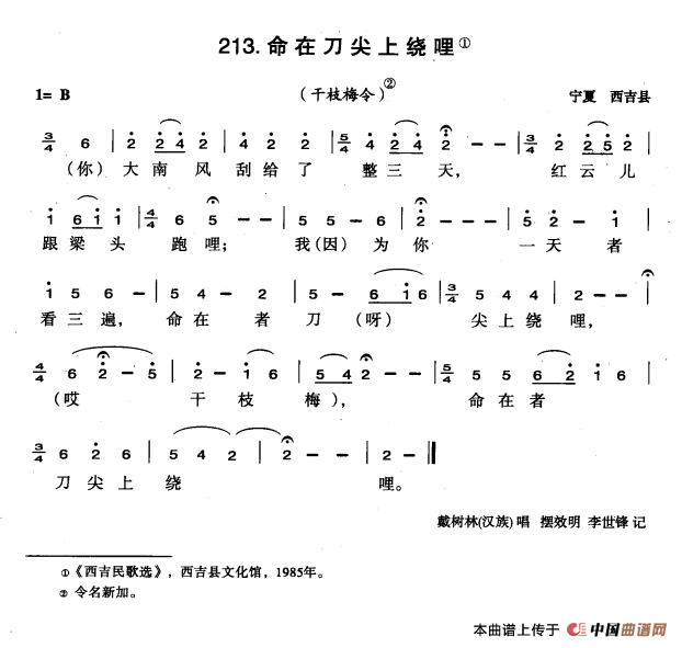 关于《命在刀尖上绕哩》曲谱的评论