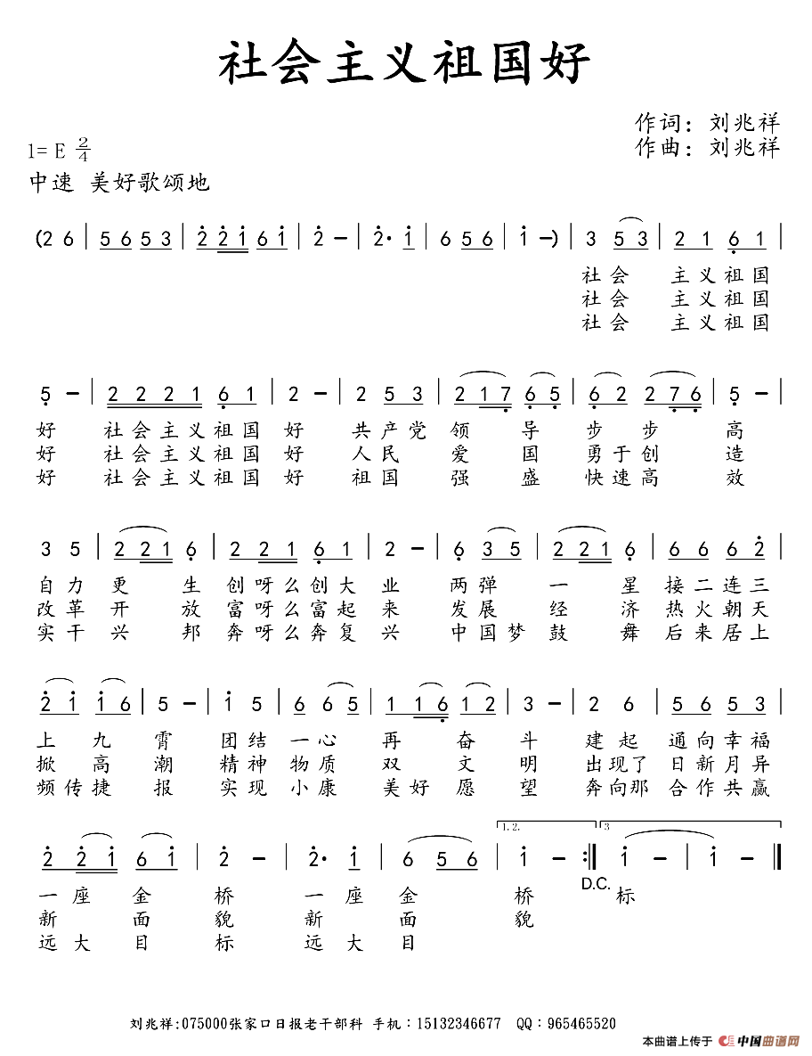 关于《社会主义祖国好》曲谱的评论