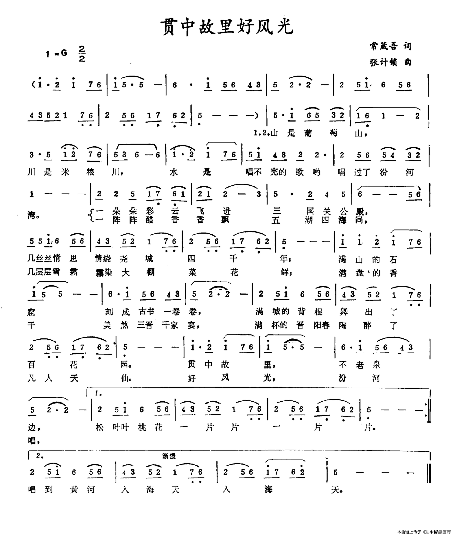 作词:常箴吾 作曲:张计锁 来源:《中国曲谱网》 上传:沉舟侧畔过