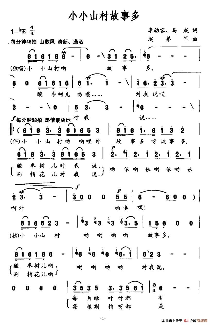 关于《小小山村故事多》曲谱的评论
