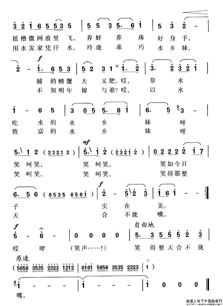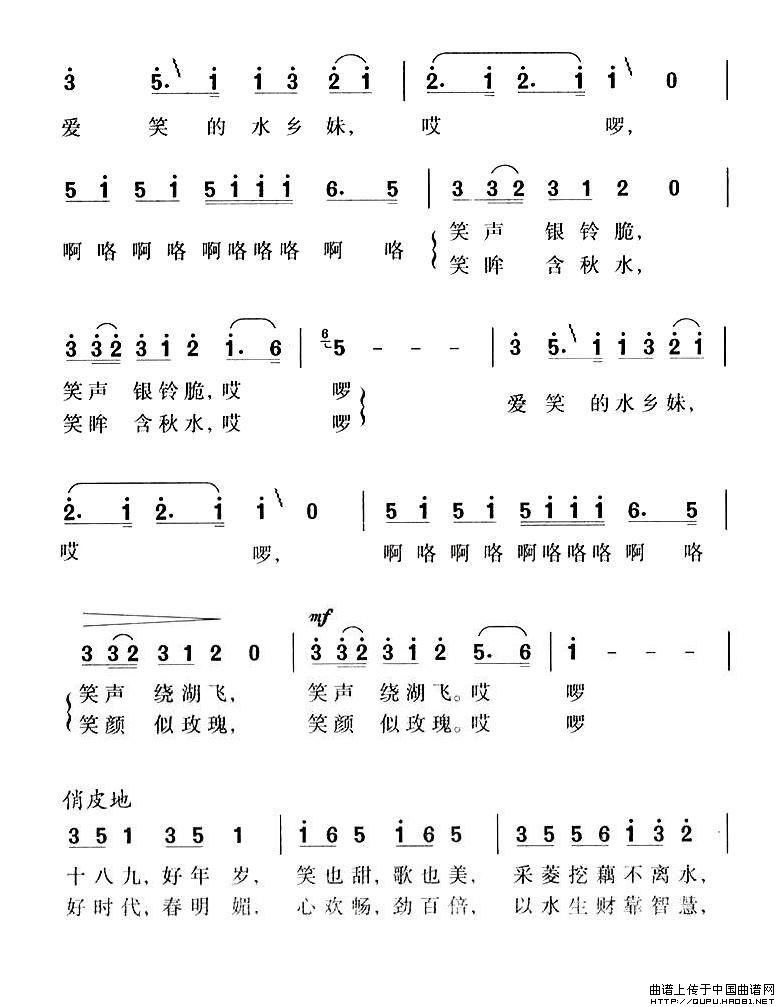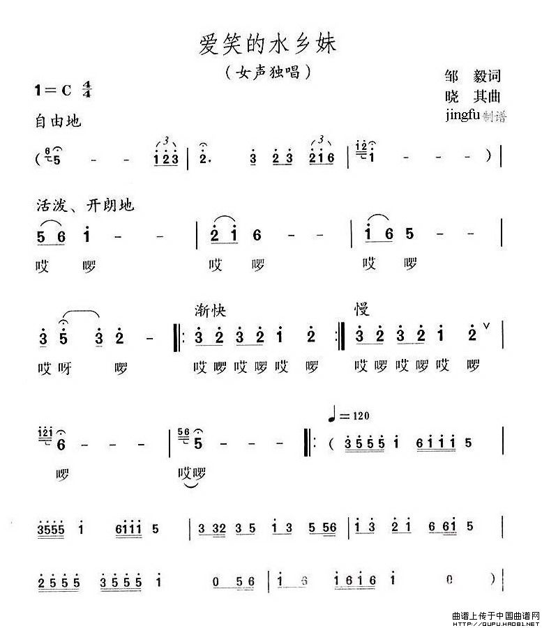 关于《爱笑的水乡妹》曲谱的评论