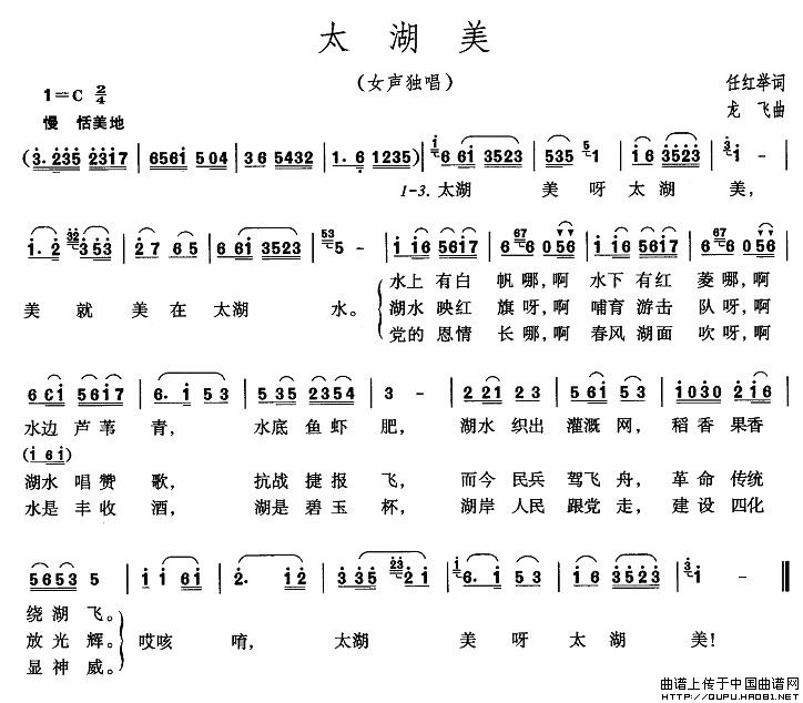 关于《太湖美》曲谱的评论