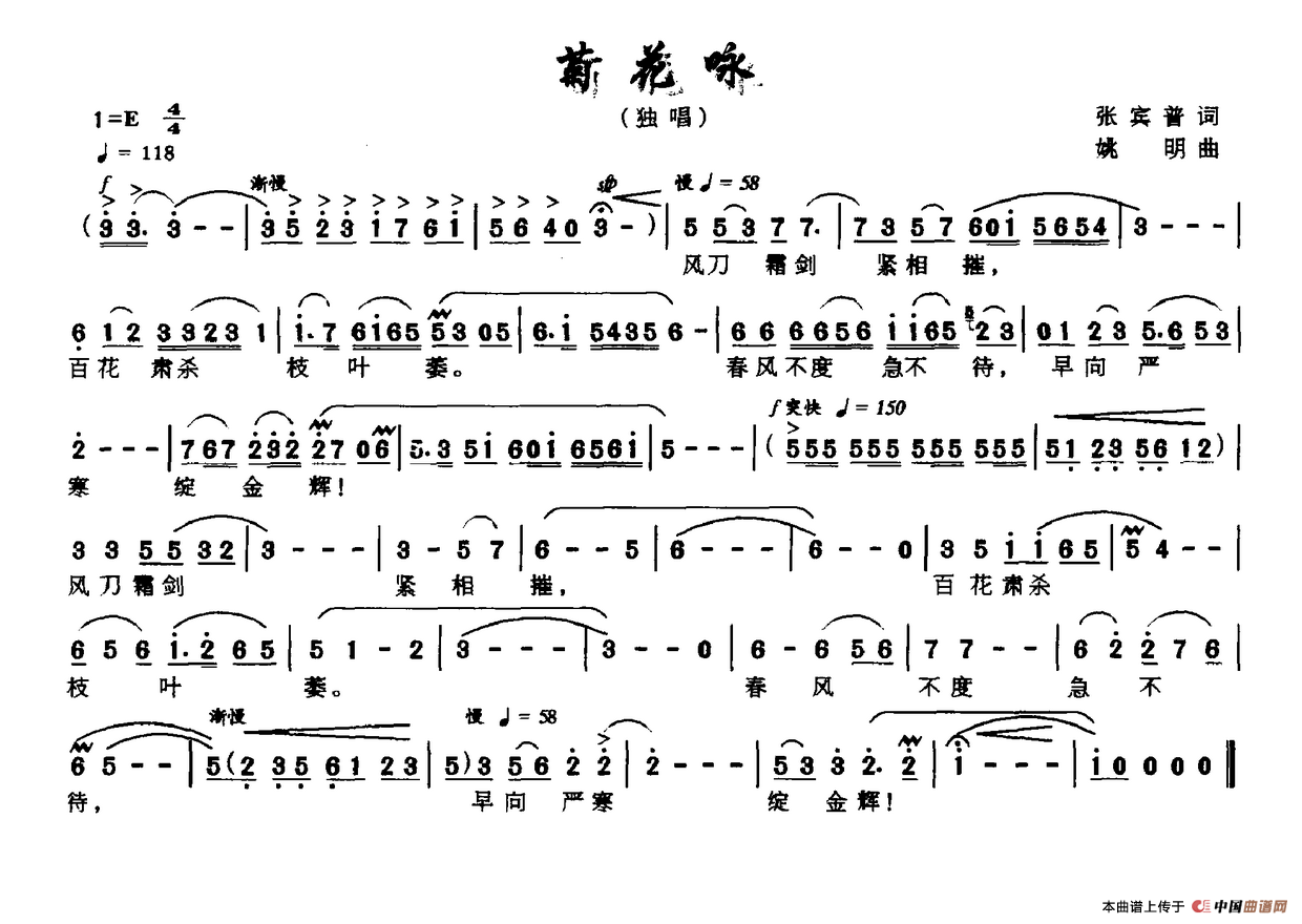 致谢:《中国曲谱网》衷心感谢作者老师馈赠原版歌谱!