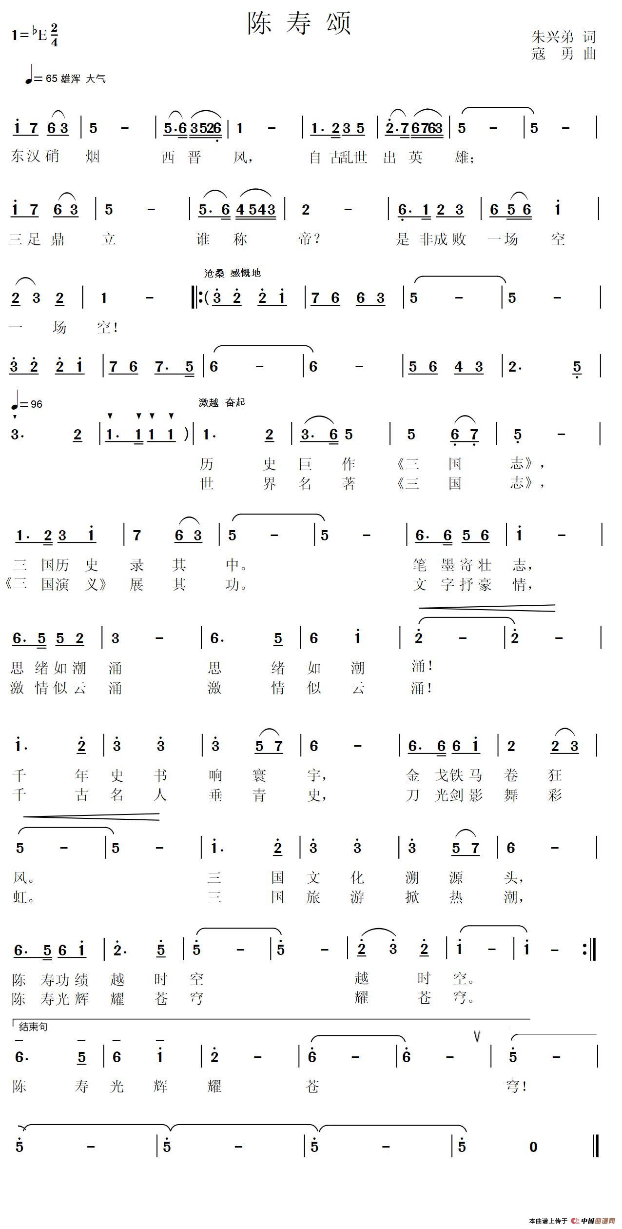 关于《陈寿颂》曲谱的评论