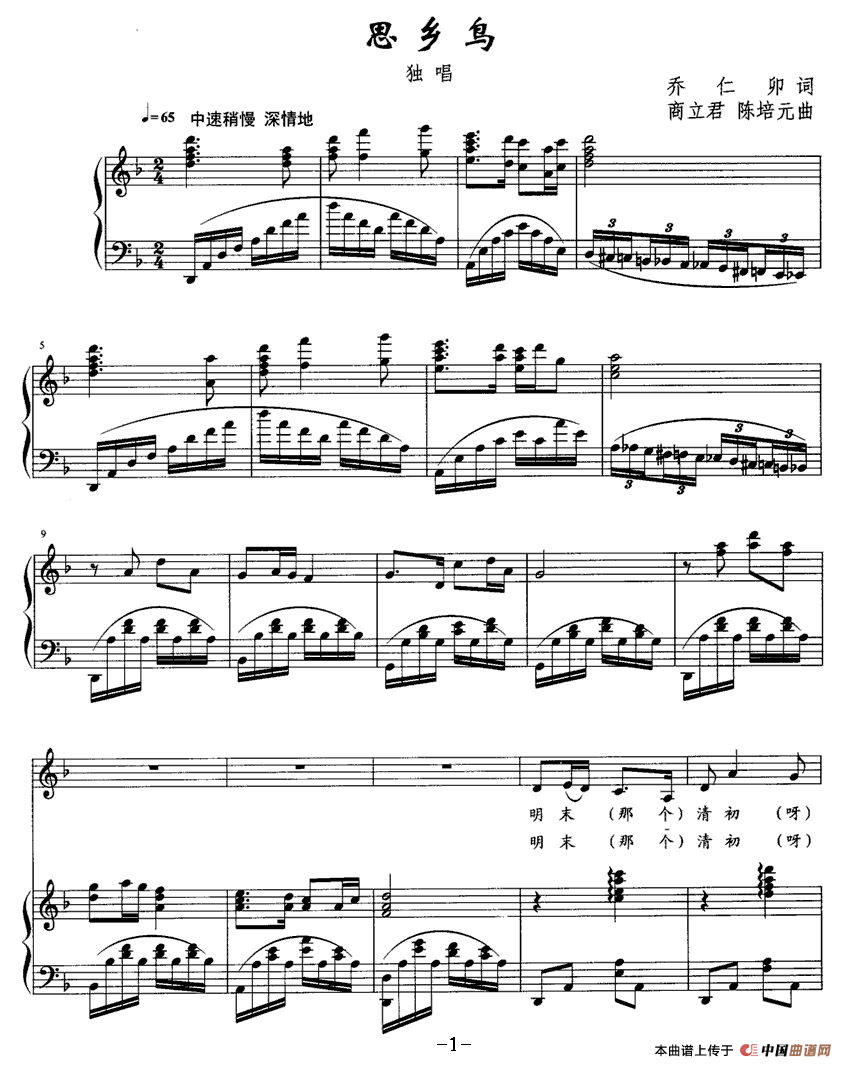 提示:在曲谱图片上单击右键,选择“图片另存为...”即可将曲谱保存到您的电脑中,打印时候可将图片插入到WORD中,调整合适大小打印即可。