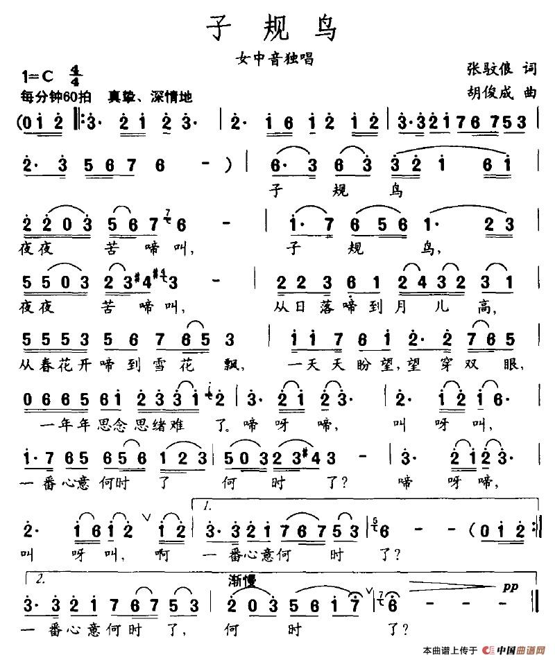 关于《子规鸟》曲谱的评论