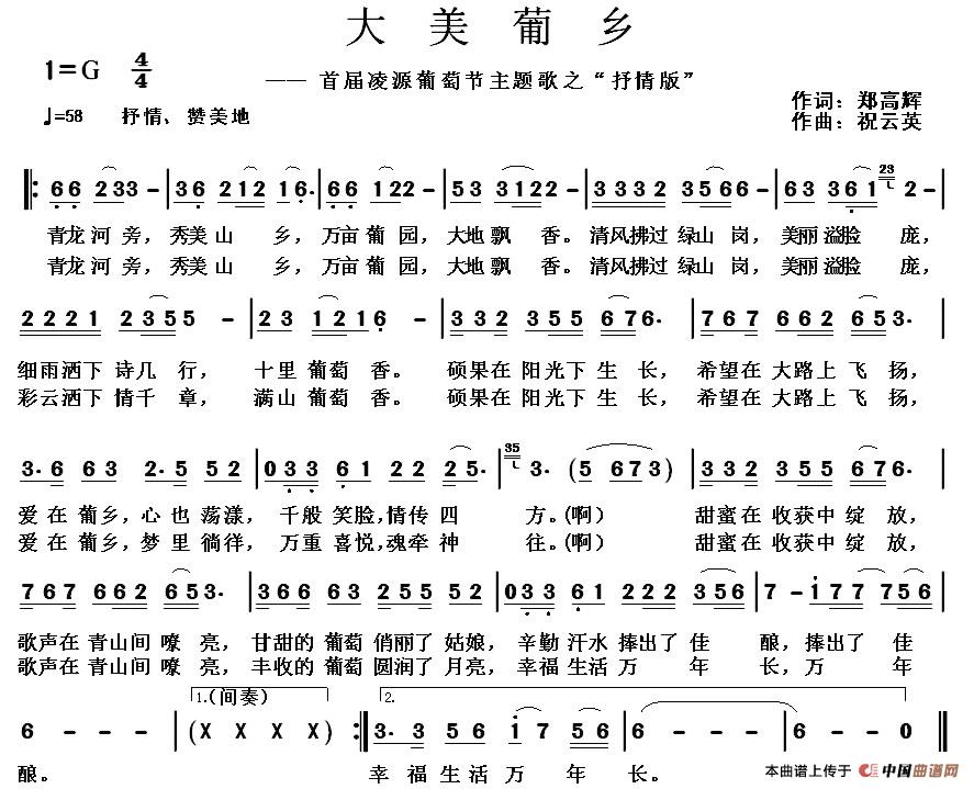 致谢:《中国曲谱网》衷心感谢作者老师馈赠原版歌谱!