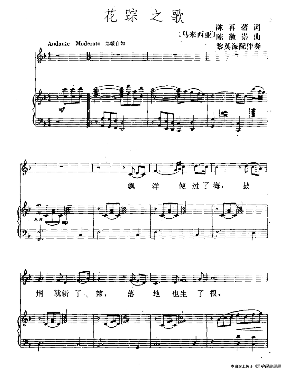 作词:陈再潘 作曲:陈徽崇 来源:《中国曲谱网》 上传:沉舟侧畔过