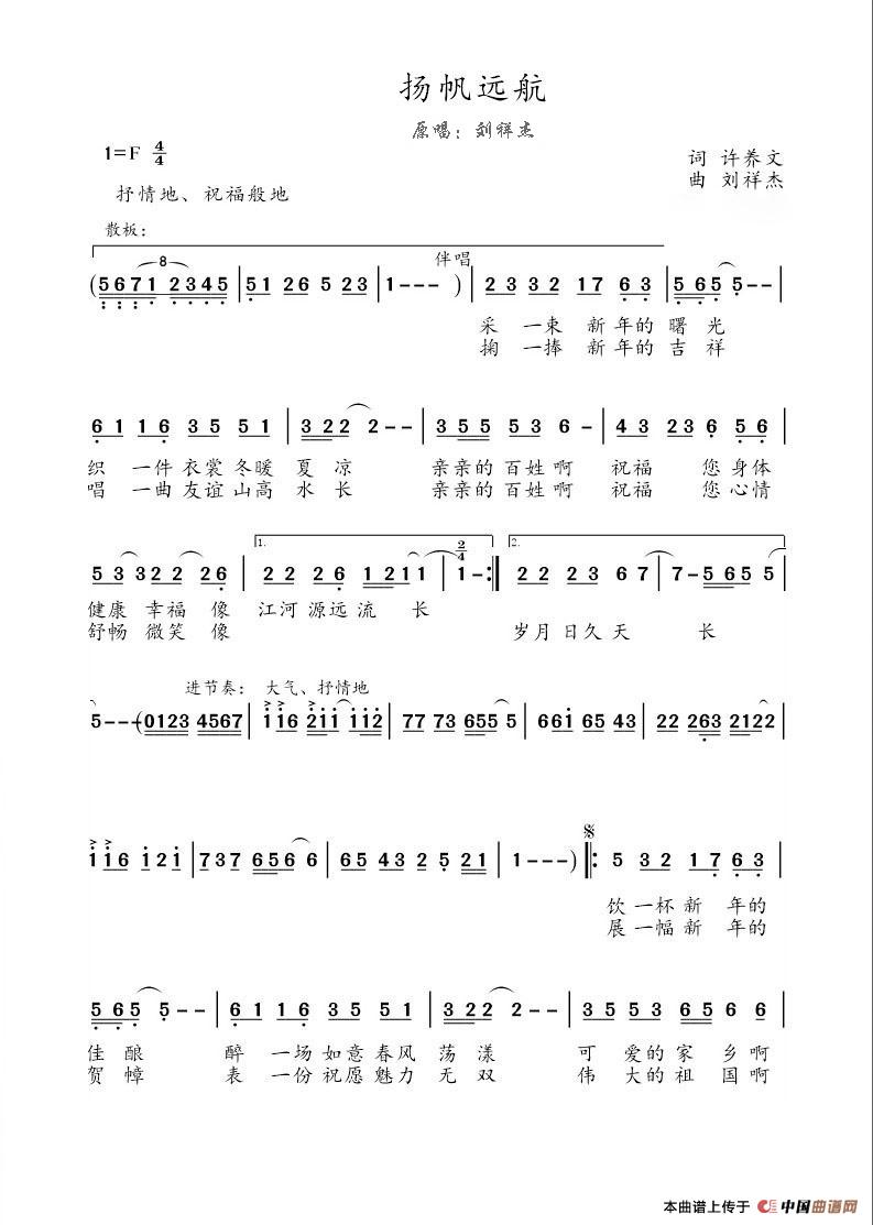 当前位置: 首页 民歌曲谱 四字歌名 扬帆远航(许养文词 刘祥杰曲)